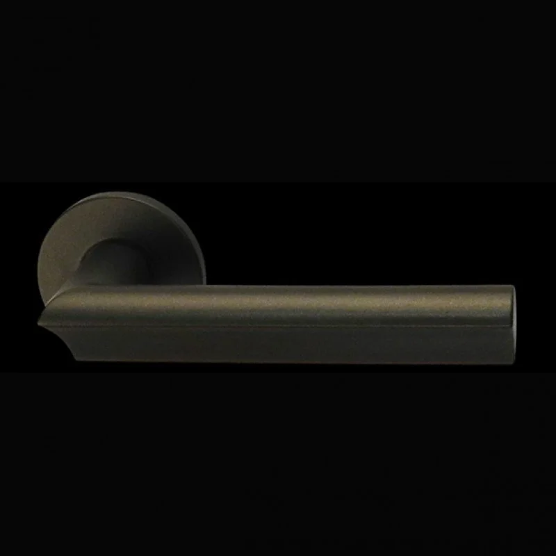 Garniture de poignées de porte ECLIPSE fabriquée en acier inoxydable brun mat en forme ronde coupé à l'angle avec fraisage ergonomique pour le pouce sur toute la poignée.*