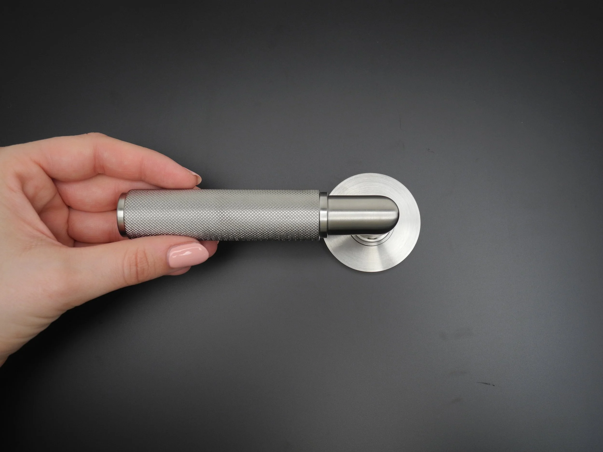 Dans notre manufacture, nous pouvons répondre aux souhaits individuels des clients en matière de ferrements. Ici, le maître d'ouvrage a découvert le modèle de poignée K2 dans notre salle d'exposition et a été impressionné par le guillochage du manche. Toutefois, la forme de la poignée ZYL lui convenait mieux. Nous avons ainsi pu créer un nouveau design qui est une combinaison unique des deux modèles.
